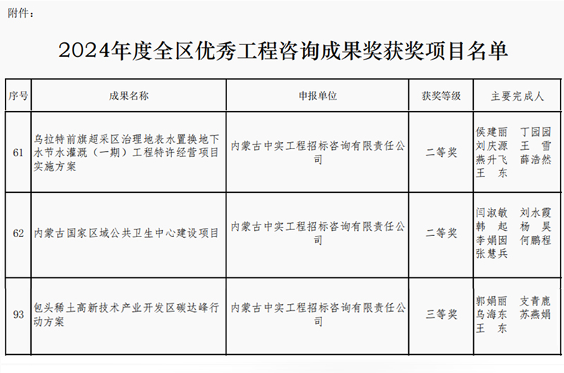 2025-04-168082 次2025年4月16日,内蒙古工程咨询协会公布了2024年度优秀咨询成果奖获奖单位名单,我司取得两个二等奖和一个三等奖,我司专业能力和服务质量再次获得行业的认可。此次获奖,不仅体…